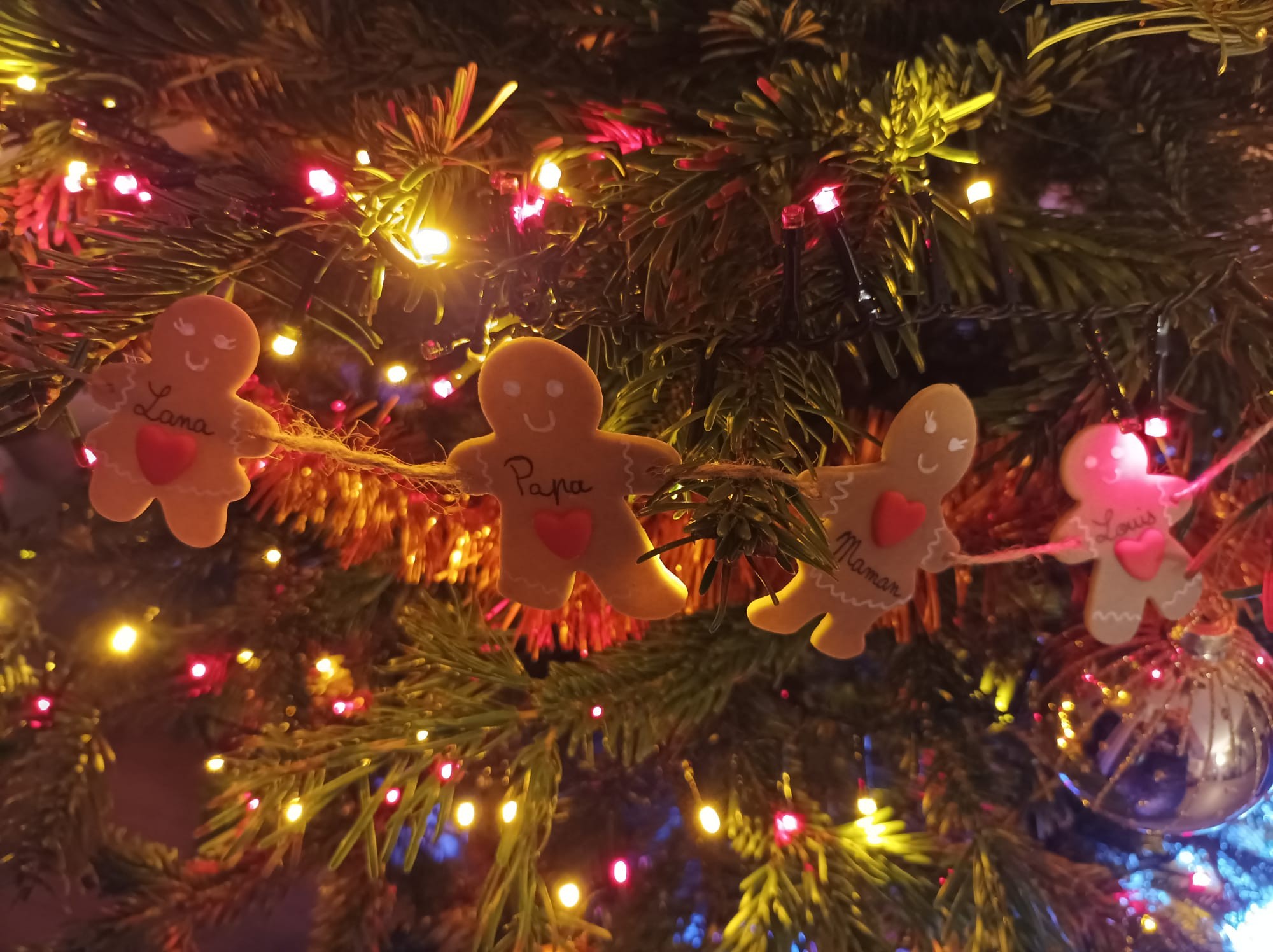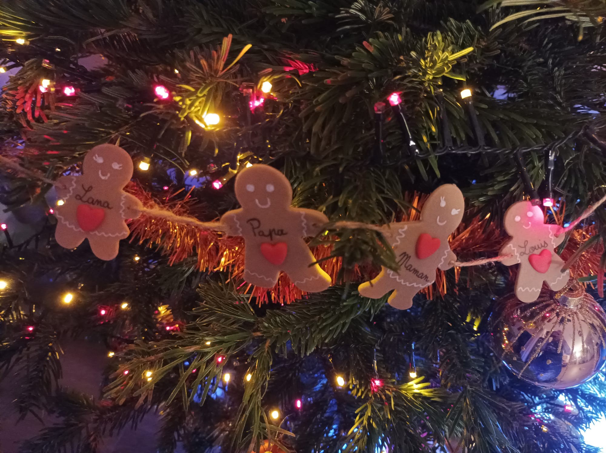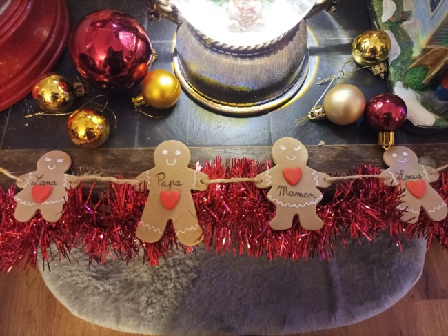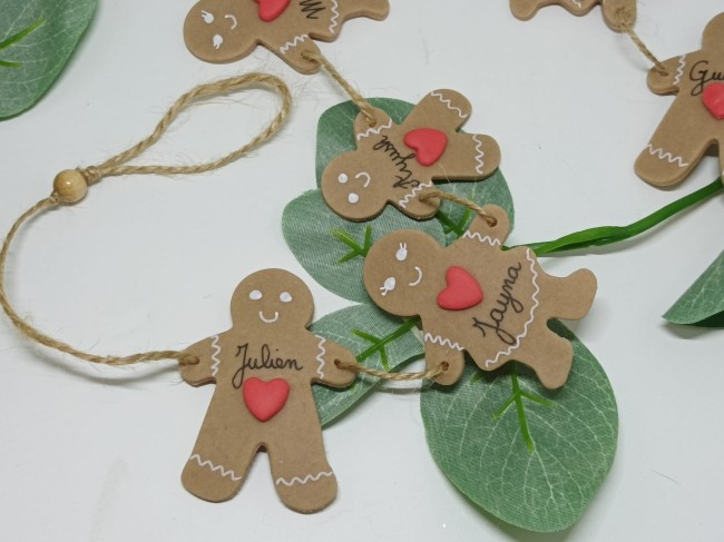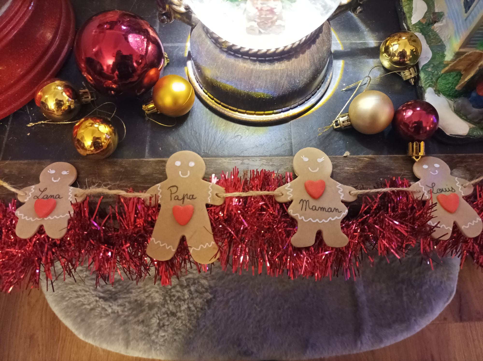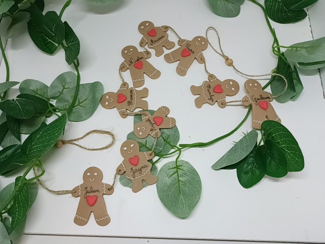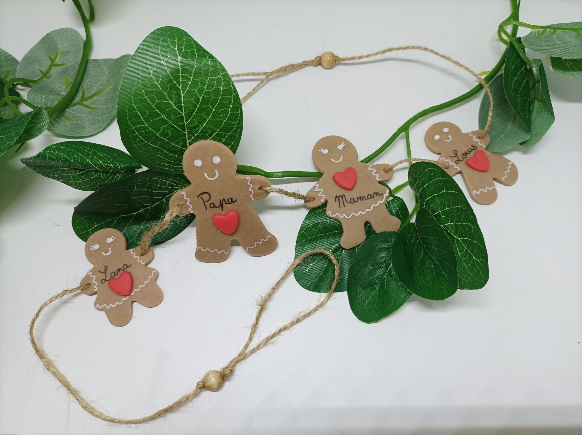 Guirlande personnalisable avec les prénoms de toute la famille sur des bonhommes de pain d'épices pour un cadeau unique fait-main